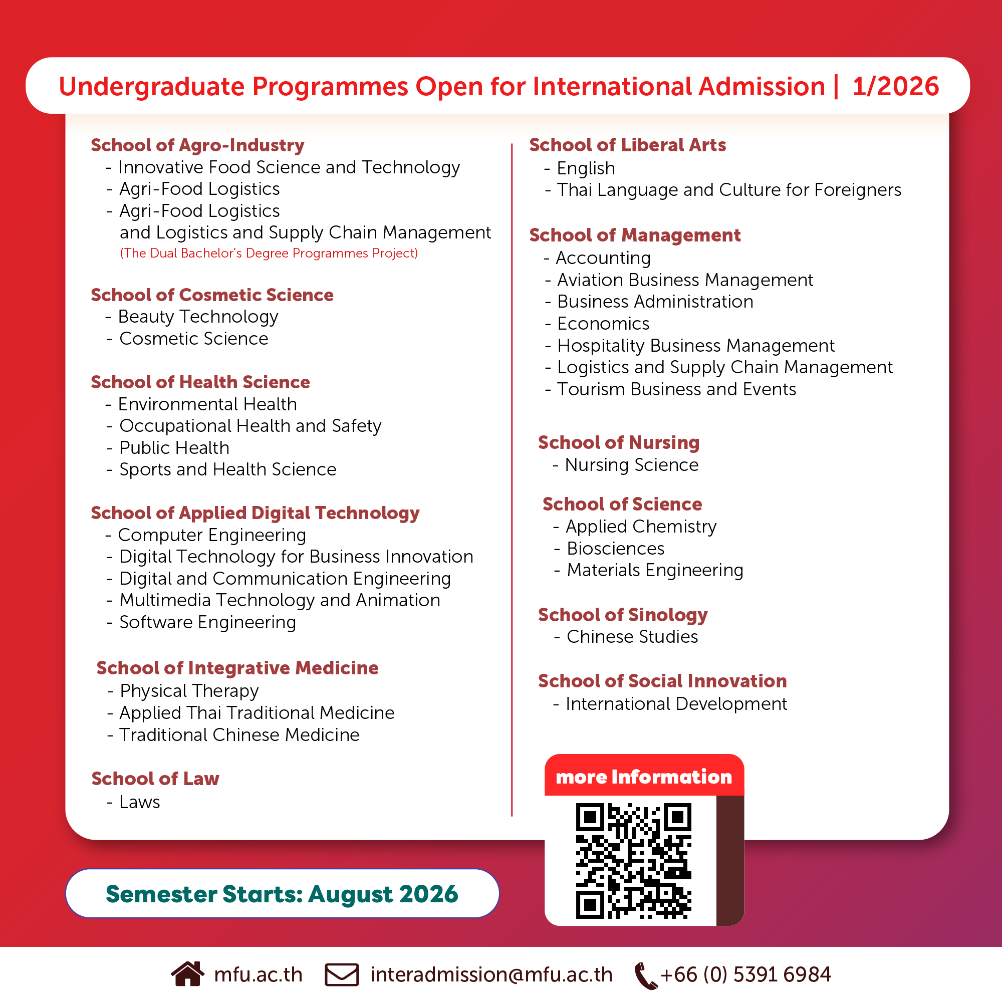 MFU International Undergraduate Admissions (Academic Year 1/2026) are opening soon!