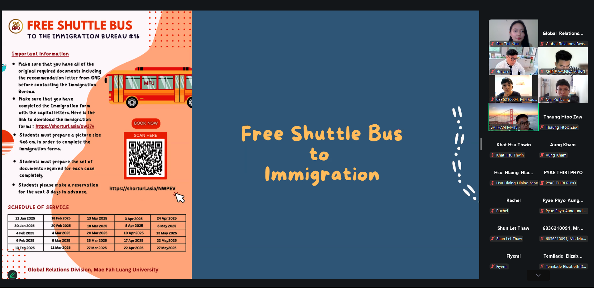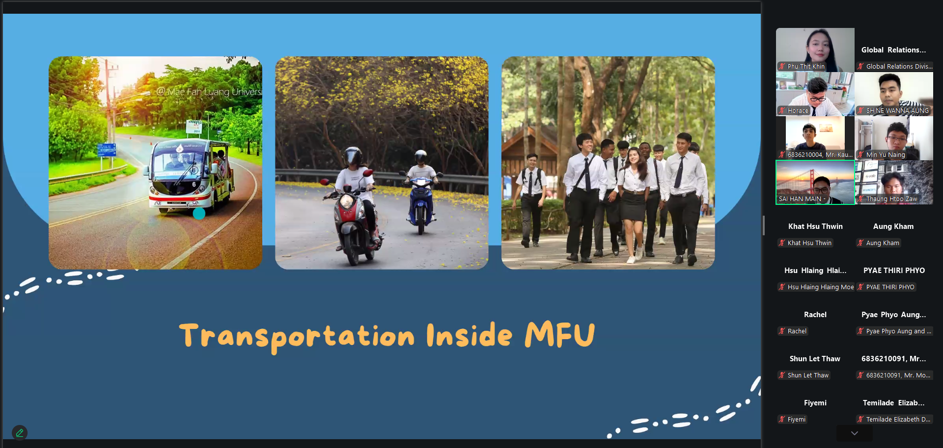 The session was designed to give essential preparation guidance. Key topics were covered by senior students, who offered advice on crucial details, from local life in Chiang Rai and visa procedures to student support, dormitory arrangements, transportation, campus facilities, and the registration process.