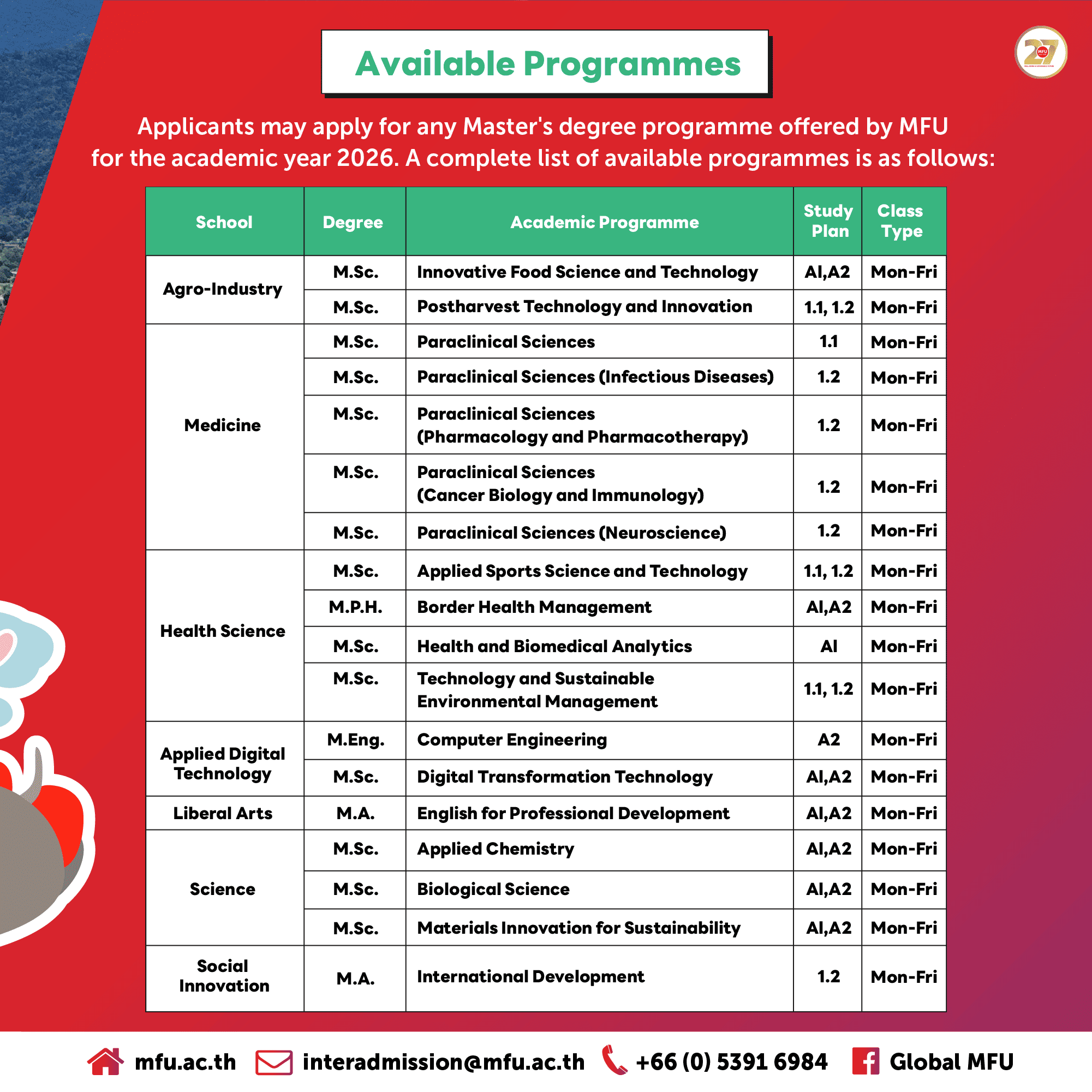 For more information, please contact interadmission@mfu.ac.th