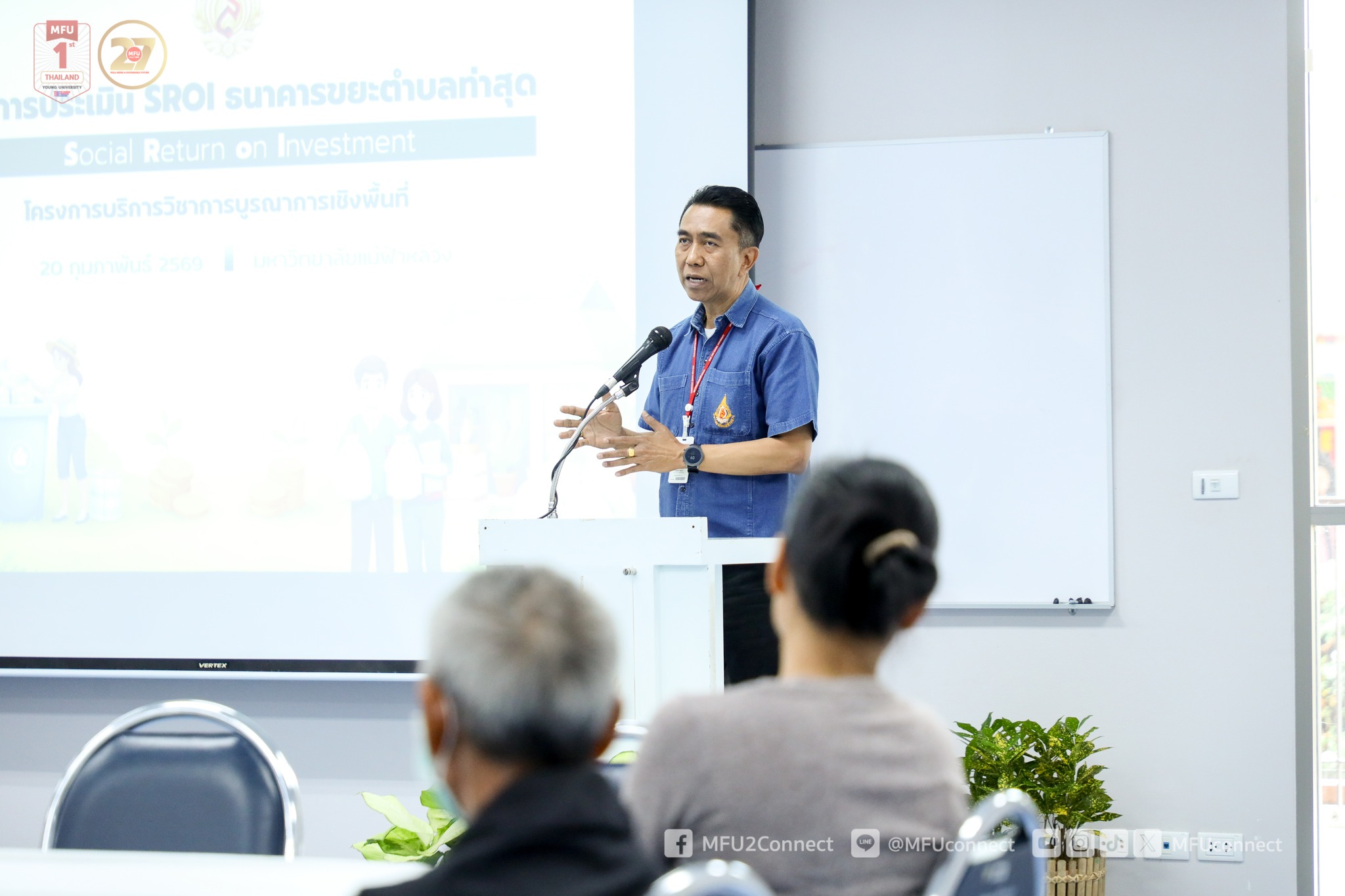 Mae Fah Luang University (MFU), through the Center for Academic Services, in collaboration with Tha Sud Sub-district Municipality–one of the University’s designated community engagement areas– organised the "Tha Sud Waste Bank Social Return on Investment (SROI) Assessment" on 20 February 2026 at General Sampao Choosri Building (E4), MFU.