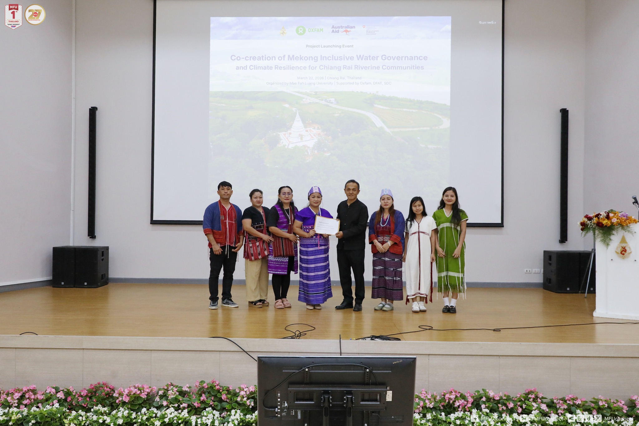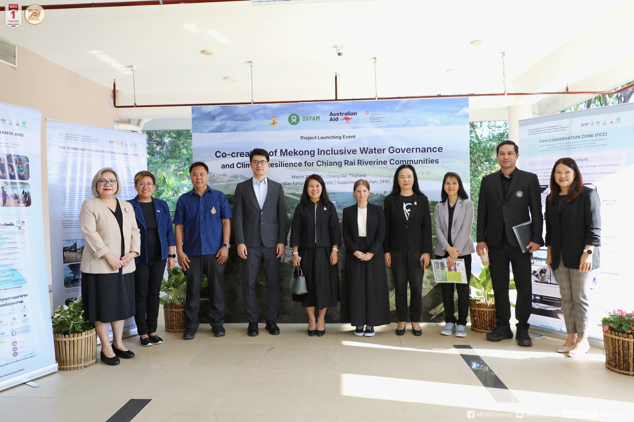 On 22 March 2026, Mae Fah Luang University (MFU), in collaboration with Oxfam, the Swiss Agency for Development and Cooperation (SDC), and the Australian Government under the Mekong-Australia Partnership (MAP), officially launched the project, "Co-creation of Mekong Inclusive Water Governance and Climate Resilience for Chiang Rai Riverine Communities," to be implemented from January 2026- December 2028. The launch event brought together key representatives from international organisations, local communities, and the government sector, particularly the Office of the National Water Resources, the Ministry of Natural Resources and Environment, and the Department of Water Resources.
