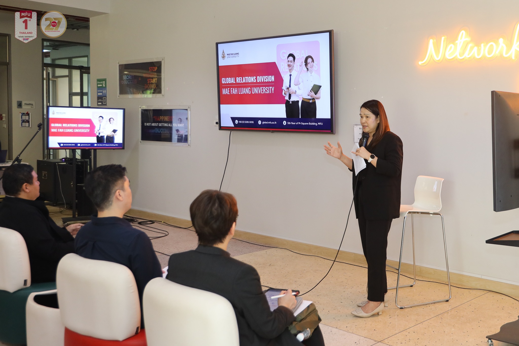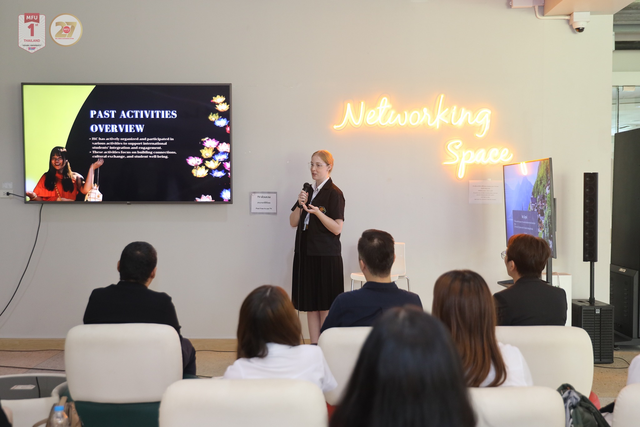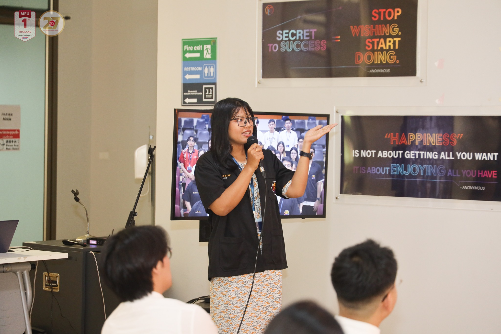 During the session, Ms. Zin Me Me Kyaw, a second-year student from the School of Health Science and President of the International Student Club (ISC) at MFU, along with the club's executive team, presented their administrative structure. They provided an overview of their operational strategies aimed at supporting the well-being of international students. Furthermore, the team detailed their collaborative efforts with the Global Relations Division and their support for various university divisions under the "Internationalisation at Home" framework. They also highlighted their Student-Led Projects, which are designed to foster a vibrant international environment and enhance students' quality of life. These impactful initiatives are carried out in close coordination with the Student Union, the Student Council, and other student clubs.