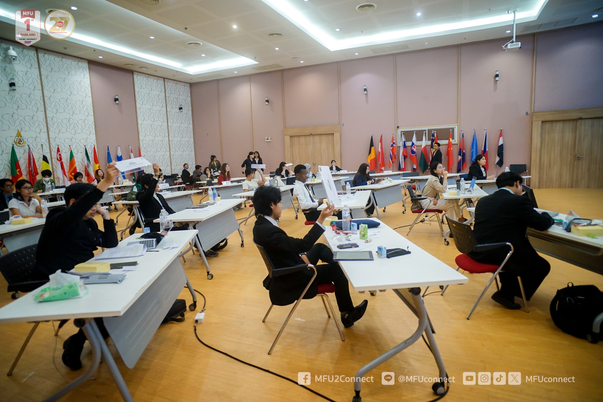 Mae Fah Luang University (MFU), led by the Mae Fah Luang Model United Nations (MFU MUN) Club in collaboration with the Global Relations Division, organised the “MFU MUN Conference 2026” on 4–5 April 2026 at the Kham Mok Luang Room, M-Square Building. This student-driven initiative brought together over 60 participants, including club members, MFU students from various schools, and members of the CMU MUN Club from Chiang Mai University.